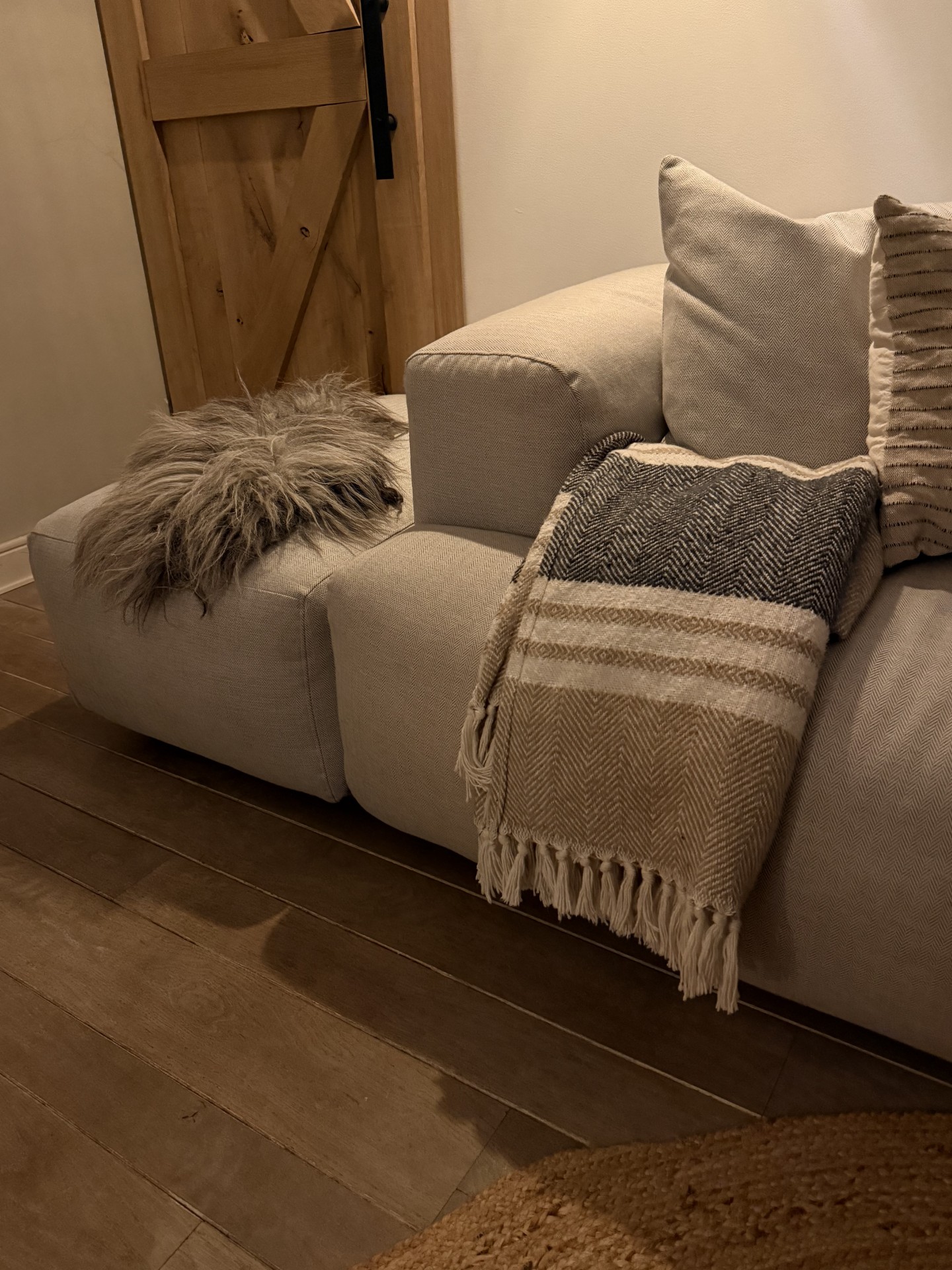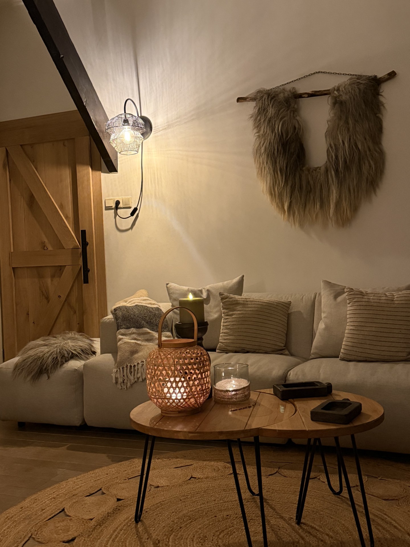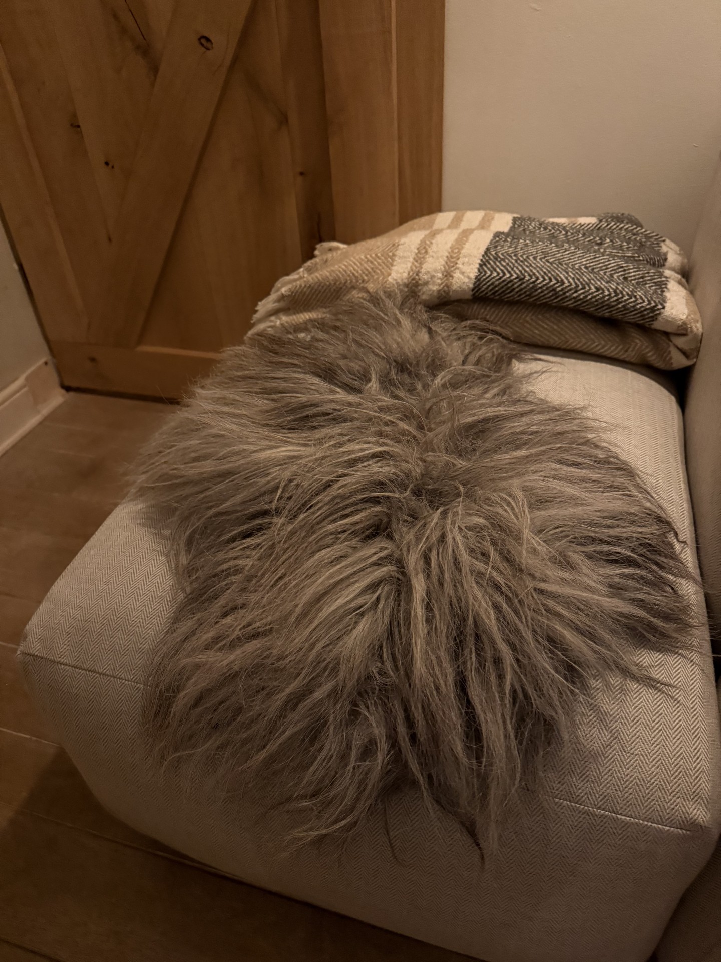 Mooie volle Heidschnucke deco vacht. Grijs, bruin en beige tinten. 60x40 cm. incl lokken. Voor veel doeleinden te gebruiken, prachtig in een grote olijf bak of op een bajot tafeltje. Ook super leuk i.c.m. de wandhanger, als set.